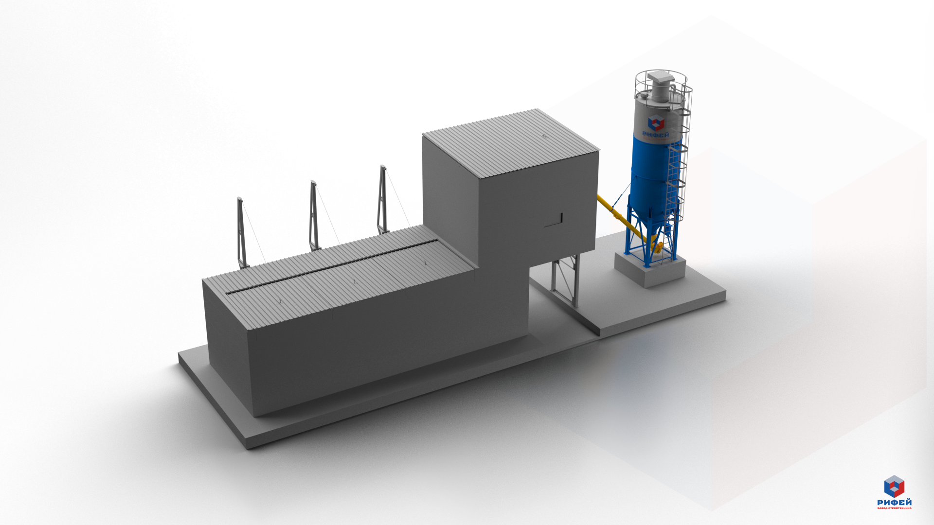 Всесезонный бетонный завод "Рифей-Бетон-Зима-60" зимнее исполнение, производство товарного бетона и (или) раствора 60 м3 в час как в ручном, так и автоматическом режиме.